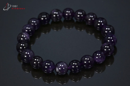 Bracelet minéraux Améthyste 19,5cm / Perles 10 mm / 26g / BA326