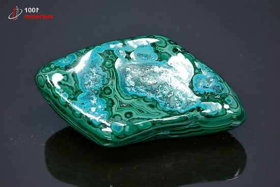 Malachite polie sur Chrysocolle - R.D. Congo - minéraux polis 7,7 cm / 135g / BC922 - Vignette | 1001 minéraux
